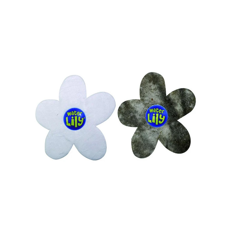 Posé à la surface de l’eau dans le panier de skimmer, Le Water Lily® absorbe et retient les substances grasses ramenées par la circulation d’eau, au fil du temps, Water Lily® se teinte d’une coloration brune plus ou moins foncée selon la nature des polluants : crèmes et huiles solaires, pollens, pollution atmosphérique.